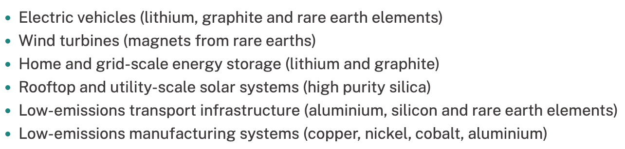 Here is a list of Australian metal and mineral resources that can be used in the Net-Zero transition: